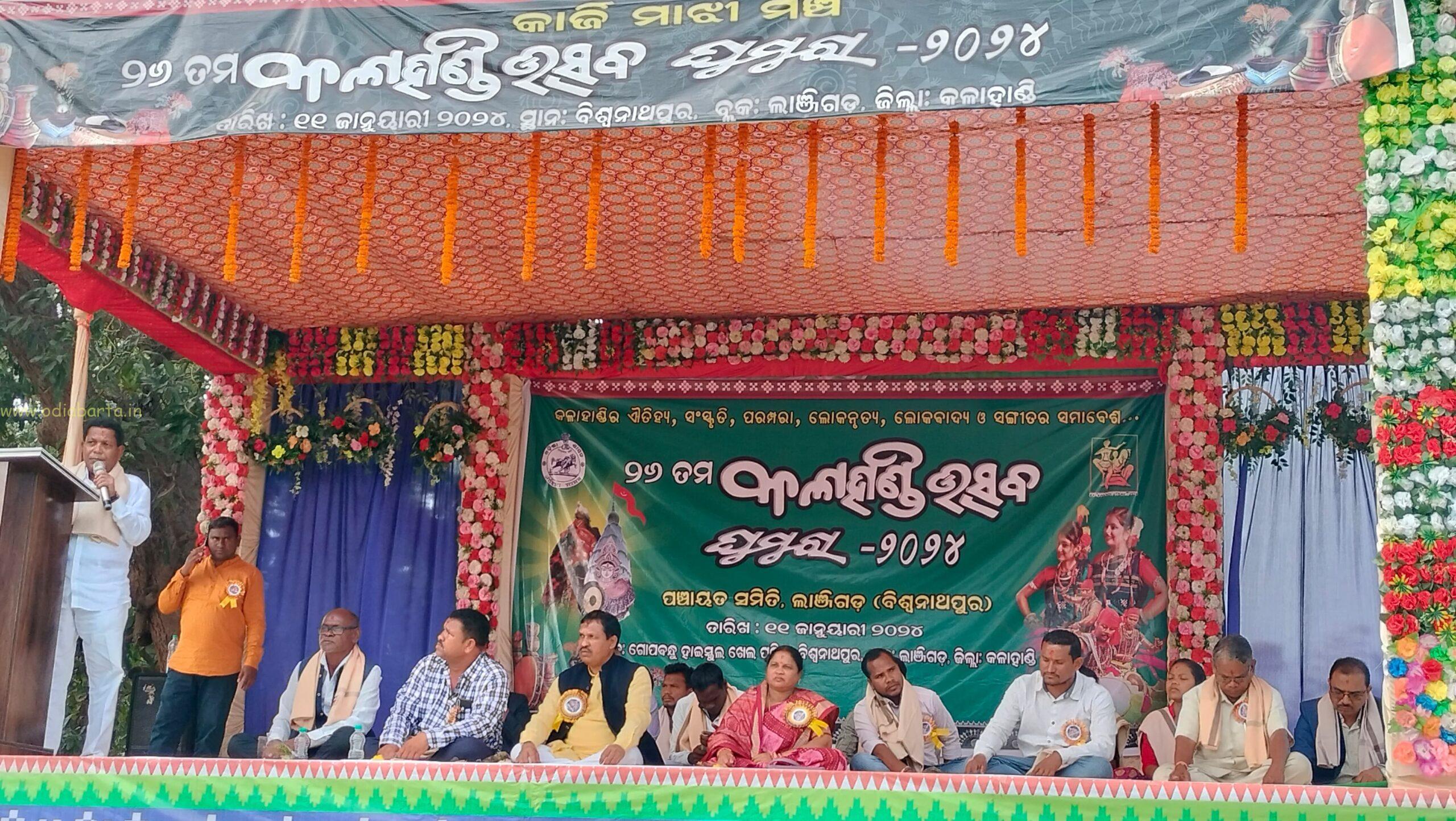ଓଡ଼ିଆ ବାର୍ତ୍ତା/ କଳାହାଣ୍ଡି (ନିଲେଶ କୁମାର ନାଗ): କଳାହାଣ୍ଡିର କଳା, ସଂସ୍କୃତି, ଲୋକନୃତ୍ୟ, ଲୋକବାଦ୍ୟ ଆଦି ମହାନ ପରମ୍ପରାର ଜ୍ବଳନ୍ତ ନିଦର୍ଶନ କଳାହାଣ୍ଡି ଉତ୍ସବ ଘୁମୁରାର ଲାଞ୍ଜିଗଡ଼ ବ୍ଲକସ୍ତରୀୟ ସଂସ୍କରଣ ଗୁରୁବାର ରାତିରେ ଅତ୍ୟନ୍ତ ଉତ୍ସାହ ଓ ଉଦ୍ଦୀପନା ମଧ୍ୟରେ ଶେଷ ହୋଇଯାଇଛି। ଉତ୍ସବ ପ୍ରାରମ୍ଭରେ ଭୈରବ ପୀଠରୁ ମଶାଲ ଅଣାଯାଇ ବିଶ୍ବନାଥପୁର ଗୋପବନ୍ଧୁ ହାଇସ୍କୁଲ ପଡ଼ିଆରେ ସ୍ଥାପନ ପରେ ଉତ୍ସବର ଶୁଭାରମ୍ଭ ହୋଇଥିଲା। ଉଦଘାଟନୀ ଉତ୍ସବରେ ମୁଖ୍ୟଅତିଥି ଭାବେ ଲାଞ୍ଜିଗଡ ବିଧାୟକ ପ୍ରଦୀପ କୁମାର ଦିଶାରୀ ଯୋଗଦେଇ ଥିବାବେଳେ ବିଶିଷ୍ଟ ଅତିଥି ଭାବେ କଳାହାଣ୍ଡି ସ୍ବତନ୍ତ୍ର ଉନ୍ନୟନ ପରିଷଦ ଅଧ୍ୟକ୍ଷ ଶିବାଜୀ ମାଝୀ, ମୁଖ୍ୟବକ୍ତା ଭାବେ ମଧୁପୁର ସରକାରୀ ବାଳିକା ଉଚ୍ଚ ବିଦ୍ୟାଳୟର ପ୍ରଧାନଶିକ୍ଷକ ବେଦବ୍ୟାସ ପ୍ରଧାନ, ସମ୍ମାନିତ ଅତିଥି ଭାବେ ଉପାଧ୍ୟକ୍ଷ ସଞ୍ଜୀବ କୁମାର ନାୟକ, ଜିଲ୍ଲା ପରିଷଦ ସଭ୍ୟ ପରୀକ୍ଷିତ ନାଏକ, ଅଞ୍ଜଳୀ ମାଝୀ, ବିଶ୍ଵନାଥପୁର ସରପଞ୍ଚ ସୁରଥ ମାଝୀ, ସିଡିପିଓ ବିଜୟଶ୍ରୀ ସିଂ ଦେଓ, ପୂର୍ବତନ ଜିଲ୍ଲାପରିଷଦ ସଭ୍ୟ ଟଙ୍କଧର ମାଝୀ, ବରିଷ୍ଠ ନାଗରିକ ରଘୁବୀର ନାଗ, ଅନନ୍ତରାମ ପ୍ରଧାନୀ, ଲାଞ୍ଜିଗଡ଼ ପ୍ରେସକ୍ଲବ ସଭାପତି କୈଳାସ ସାହୁ, ପିଇଡବ୍ଲ୍ୟୁ ମିଡ଼ିଆ ଏସୋସିଏସନ ସଭାପତି ନୀଲେଶ କୁମାର ନାଗ, ଲାଞ୍ଜିଗଡ ବ୍ଲକ କଳାକାର ସଂଘ ଉପସଭାପତି ବବୃବାହନ ଘଡ଼େଇ, ମଶାଲ କମିଟି ମୁଖ୍ୟ ବଳରାମ ବେହେରା, ପୂର୍ବତନ ଅଧ୍ୟକ୍ଷ ମନୋହର ହରପାଲ, ଲାଞ୍ଜିଗଡ଼ରୋଡ଼ ସରପଞ୍ଚ ମମତା ଶବର, ଗୋବର୍ଦ୍ଧନପୁର ସରପଞ୍ଚ ବୈଦେହୀ ମାଝୀ, ପାହାଡ଼ପଦର ସରପଞ୍ଚ ଲକ୍ଷ୍ମଣ ମାଝୀ, କଦମ୍ବଗୁଡା ସରପଞ୍ଚ ସନ୍ତୋଷ ମାଝୀ, କମର୍ଦ୍ଧା ସମିତି ସଭ୍ୟ ମାଝୀ ପ୍ରମୁଖ ମଞ୍ଚାସୀନ ଥିଲେ। ପୂର୍ବତନ ବ୍ଲକ ଉପାଧ୍ୟକ୍ଷ ଜଗଦୀଶ ବେନିଆଁ ସ୍ବାଗତ ଅଭିଭାଷଣ ଓ ଧନ୍ୟବାଦ ଅର୍ପଣ କରିଥିବାବେଳେ ସୁଶୀଲ କୁମାର ବାଗ ସଭା ପରିଚାଳନା କରିଥିଲେ। ଦ୍ବିତୀୟ ଅଧିବେଶନରେ ବିଡିଓ ଶଶାଙ୍କ ପାତ୍ର ଯୋଗ ଦେଇଥିବାବେଳେ ବ୍ଲକ ଅଧ୍ୟକ୍ଷା କମଳା ପାତ୍ର, ସୁପ୍ରଭା ପାତ୍ର, ରାଜଶ୍ରୀ ମହାପାତ୍ରଙ୍କ ଅଧ୍ୟକ୍ଷତାରେ ଅନୁଷ୍ଠିତ ଉଦଯାପନୀ ଉତ୍ସବରେ କୃତୀ ପ୍ରତିଯୋଗୀମାନଙ୍କୁ ଅତିଥିମାନେ ପୁରସ୍କୃତ କରିଥିଲେ। ଏହି ଅବସରରେ ଅନୁଷ୍ଠିତ ରଙ୍ଗାରଙ୍ଗ କାର୍ଯ୍ୟକ୍ରମରେ ବ୍ଲକର ବିଭିନ୍ନ ସ୍କୁଲ ଓ କଲେଜ ତଥା ଅନୁଷ୍ଠାନରୁ ୭୦ରୁ ଅଧିକ ସାଂସ୍କୃତିକ ଦଳ କଳା ପରିବେଷଣ କରିଥିଲେ। ଧଅଁରାଭଟା ଓଡ଼ିଶା ଆଦର୍ଶ ବିଦ୍ୟାଳୟର ଛାତ୍ରଛାତ୍ରୀମାନଙ୍କ ଦ୍ବାରା ପରିବେଷିତ ଅତ୍ୟନ୍ତ ମନଛୁଆଁ ହୋଇଥିଲା। ସାଂସ୍କୃତିକ କାର୍ଯ୍ୟକ୍ରମକୁ ଗୋପାଳଦାସ ମହାନନ୍ଦ ଓ ନିହାରୀକା ବିଶ୍ବାଳ ପରିଚାଳନା କରିଥିଲେ। ଏଥିରେ ବ୍ଲକ ମଙ୍ଗଳ ଅଧିକାରୀ ପଙ୍କଜ ବଳୀୟାର ସିଂହ, ଜିପିଇଓ ସରୋଜ ପ୍ରଧାନ, ସାମାଜିକ ସଂପ୍ରସାରଣ ଅଧିକାରୀ ଅରବିନ୍ଦ ମହାପାତ୍ର, ବିପିସି ଜାଭେଦ ଖାନ, ଯୋଗେଶ୍ବର ଶବର, ବିପିଏମ୍ ସଞ୍ଜୀବ କହଁରଙ୍କ ସମେତ ବ୍ଲକସ୍ତରୀୟ ଅଧିକାରୀ ଓ କର୍ମଚାରୀମାନେ କାର୍ଯ୍ୟକ୍ରମ ପରିଚାଳନାରେ ପ୍ରମୁଖ ଭୂମିକା ଗ୍ରହଣ କରିଥିଲେ। ସେହିପରି ବିଳମ୍ବିତ ରାତି ଯାଏଁ ଚାଲିଥିବା ସାଂସ୍କୃତିକ କାର୍ଯ୍ୟକ୍ରମକୁ ବ୍ଲକର ବିଭିନ୍ନ ଅଞ୍ଚଳରୁ ଦଶ ହଜାରରୁ ଉର୍ଦ୍ଧ୍ବ ଜନସାଧାରଣ ଉପଭୋଗ କରିଥିଲେ।