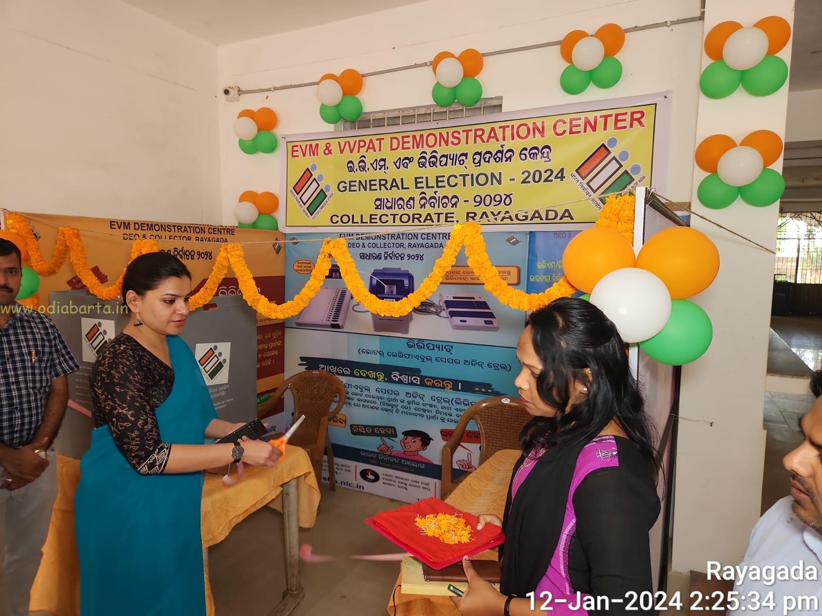 ଭାସ୍କର ରଇତ, ଅତିରିକ୍ତ ଜିଲ୍ଲାପାଳଙ୍କ ଉପସ୍ଥିତିରେ ସୁଶ୍ରୀ ସୂର୍ଯ୍ୟମଣୀ ଭୋଇ, ଡେପୁଟି ଜିଲ୍ଲାପାଳ (ନିର୍ବାଚନ), ସୁଶ୍ରୀ ପ୍ରଜ୍ଞା ପରମିତା, ଡେପୁଟି ଜିଲ୍ଲାପାଳ (ନିର୍ବାଚନ) ଓ ମୃତ୍ୟୁଞ୍ଜୟ ବରାଳ, ସହକାରୀ ଜିଲ୍ଲାପାଳ (ନିର୍ବାଚନ) ସମସ୍ତ ଅଧିକାରୀଙ୍କୁ ତାଲିମ ପ୍ରଦାନ କରିଥିଲେ । ତତସହିତ ରାୟଗଡ ଜିଲ୍ଳାପାଳଙ୍କ କାର୍ଯାଳୟ ପରିଷରରେ ଫ୍ରେବୃଆରୀ ଶେଷ ପର୍ଯ୍ୟନ୍ତ କାର୍ଯ୍ୟକ୍ଷମ ହେବାକୁ ଥିବା ଇଭିଏମ ଓ ଭିଭିପାଟ ପ୍ରଦର୍ଶନ କେନ୍ଦ୍ର ଶ୍ରୀମତୀ ସ୍ଵଧା ଦେବ ସିଂ ଜିଲ୍ଲା ନିର୍ବାଚନ ଅଧିକାରୀ ତଥା ଜିଲ୍ଲାପାଳ, ରାୟଗଡାଙ୍କ ଦ୍ଵାରା ଶୁଭ ଉଦଘାଟିତ ହୋଇଥିଲା ।