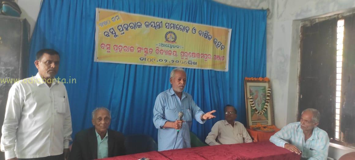 ଓଡ଼ିଆ ବାର୍ତ୍ତା/ ପୁରୁଷୋତ୍ତମପୁର (ପ୍ରସନ୍ନ କୁମାର ଦାଶ): ପୁରୁଷୋତ୍ତମପୁର ଏନଏସିରେ ଅବସ୍ଥିତ ବସୁ ପ୍ରହରାଜ ସଂସ୍କୃତ ବିଦ୍ୟାଳୟ ପରିସରରେ ଅନୁଷ୍ଠାନର ପ୍ରଧାନ ଆଚାର୍ଯ୍ୟ ମୋଚିରାମ ଦାଶଙ୍କ ସଂଯୋଜନାରେ ଅନୁଷ୍ଠିତ ହୋଇଛି ଅନୁଷ୍ଠାନର ୯ମ ବାର୍ଷିକ ଉତ୍ସବ ଓ ବସୁ ପ୍ରହରାଜଙ୍କ ୩୩୦ତମ ଜୟନ୍ତୀ| ଏହି ବିଦ୍ୟାଳୟ ଯାହାଙ୍କ ନାମରେ ହୋଇଛି ସେ ଜଣେ ବିଦ୍ୱାନ ପଣ୍ଡିତ, ସାଧକ, ଏବଂ ରାଘବ ଯାଦବ କାବ୍ୟ ରଚନା କରିଛନ୍ତି, ଯାହାକି ଗୋଟିଏ ଶ୍ଳୋକ ପ୍ରଭୁ ରାମଚନ୍ଦ୍ର ଓ କୃଷ୍ଣ ଙ୍କୁ ଗୋଟିଏ ଅର୍ଥ ରେ ବୁଝାଉଛି | ଯାହାର ଓଡ଼ିଆ ଅନୁବାଦ ଏପର୍ଯ୍ୟନ୍ତ କିଏ ଲେଖି ପାରିନାହାନ୍ତି | ତା ସହିତ ସେ ମଧ୍ୟ ଗୋଟିଏ ସଂସ୍କୃତ ବ୍ୟାକରଣ ଲେଖିଛନ୍ତି ଯାହାର ନାମ ବସୁ ପ୍ରକ୍ରିୟା ରହିଛି, ଯାହାକି ଉତ୍ତର ଭାରତ ର ବନାରସ ସଂସ୍କୃତ ବିଶ୍ୱ ବିଦ୍ୟାଳୟ ରେ ପଢା ଯାଉଛି | ସାରା ଭାରତ ରେ ପାଣିନୀୟ ଙ୍କ ବ୍ୟାକରଣ ପଢ଼ା ଯାଉଥିଲା ବେଳେ, ବସୁ ପ୍ରହରାଜ ଙ୍କ ଲିଖିତ ବସୁ ପ୍ରକ୍ରିୟା କେବଳ ହିନ୍ଦୁ ସଂସ୍କୃତ ବିଶ୍ୱ ବିଦ୍ୟାଳୟ ରେ | ଖାଲି ସେତିକି ନୁହଁ ଦକ୍ଷ ଯଜ୍ଞ ରେ ଅର୍ଦ୍ଧ ଦଗ୍ଧ ଶବକୁ ଧରି ଉଦଣ୍ଡ ନୃତ୍ୟ କରୁଥିବା ଶିବ ଙ୍କ ଉଦଣ୍ଡ ନୃତ୍ୟ ରେ ପୃଥିବୀକୁ ରକ୍ଷା ପାଇଁ ବିଷ୍ଣୁ ସେହି ଶବକୁ ଖଣ୍ଡ ବିଖଣ୍ଡିତ କରିଥିଲେ | ସେହି ଖଣ୍ଡରୁ ମୁଖ୍ୟ ୪ର୍ଥ ଖଣ୍ଡ କରିଥିବା ସ୍ତନ ଖଣ୍ଡ ଯାହାକି ଦକ୍ଷିଣ ଓଡିଶାର ଅଧିଷ୍ଠିତ ଦେବୀ ମାଆ ତାରା ତାରିଣୀ ଙ୍କ ପାଳିତ ପିତା ରୂପେ ମଧ୍ୟ ବସୁ ପ୍ରହରାଜ ପରିଚିତ | ମୁଖ୍ୟ ଅତିଥି ଭାବେ ବସୁ ପ୍ରହରାଜଙ୍କ ଗ୍ରାମ ବଡ଼ ଖରିଡ଼ା ଶାସନ ଗ୍ରାମର ରିଟା ଇଡ଼ କୃଷି ଅଧିକାରୀ ନଳିନୀ କାନ୍ତ ମିଶ୍ର, ଏବଂ ସାମ୍ନାନୀତ ଅତିଥି ଭାବେ ଏହି ବିଦ୍ୟାଳୟ ର ପୃଷ୍ଟ ପୋଷାକ ଏବଂ ହିନ୍ଦୀ ଭବନ ର ଅଧକ୍ଷ ପ୍ରଫୁଲ କୁମାର ରଥ, ଓ ଅନୁଷ୍ଠାନ ର ସଭାପତି ତଥା ପ୍ରାକ୍ତନ ଏନଏସି ଅଧକ୍ଷ ବାସୁଦେବ ମହାପାତ୍ର, ପୂର୍ବତନ ପ୍ରଧାନ ଶିକ୍ଷକ, ଏ ରାଜ ଗୋପାଳ ରାଓ, ମୁଖ୍ୟବକ୍ତା ଭାବେ ଭୀମପୁର ସଂସ୍କୃତ ବିଦ୍ୟାଳୟ ର ଅବସର ପ୍ରାପ୍ତ ପ୍ରଧାନ ପଣ୍ଡିତ ଲଡ଼ୁ କିଶୋର ସାହୁ, ସଭାନେତ୍ରୀ ମୀରା ପ୍ରଧାନ ମଞ୍ଚାସିନ ଥିଲେ | ଏହିମଞ୍ଚାସିନ ଅତିଥି ମାନେ ବସୁ ପ୍ରହରାଜ ଙ୍କ ବିଷୟରେ ଆଲୋକ ପାତ କରିବା ସହ ଏହି ବିଦ୍ୟାଳୟ ନିକଟରେ ୫ଟି ରୂପେ ରୂପାନ୍ତରିତ ହୋଇ ଥିଲା ବେଳେ ୭ଜଣ ଶିକ୍ଷକ ଙ୍କ ମଧ୍ୟରୁ ୫ଜଣ ଅବସର ନେଇଗଲେଣି ତେଣୁ ରାଜ୍ୟ ମାନ୍ୟବର ମୁଖ୍ୟମନ୍ତ୍ରୀ ୫ଟି ଅଧକ୍ଷ, ଓ ଶିକ୍ଷା ବିଭାଗ ସଚିବ, ଶିକ୍ଷା ମନ୍ତ୍ରୀ ଏହି ଅନୁଷ୍ଠାନ ପ୍ରତି ଟିକେ ଦୟା କରି କିଛି ଶିକ୍ଷକ ନିୟୋଜିତ କରିବାକୁ ଅତିଥି ମାନେ ଅନୁରୋଧ କରିଥିଲେ | ଏହି କାର୍ଯ୍ୟକ୍ରମକୁ ଅନୁଷ୍ଠାନ ର ସହକାରୀ ପଣ୍ଡିତ ଦୀନବନ୍ଧୁ ଦାଶ, ଅରୁଣ କୁମାର ପାଢ଼ୀ, ଶିବାଶିଷ ପଣ୍ଡା ଓ ପ୍ରତିଭା ଦାଶ ସହଯୋଗ କରିଥିଲେ |