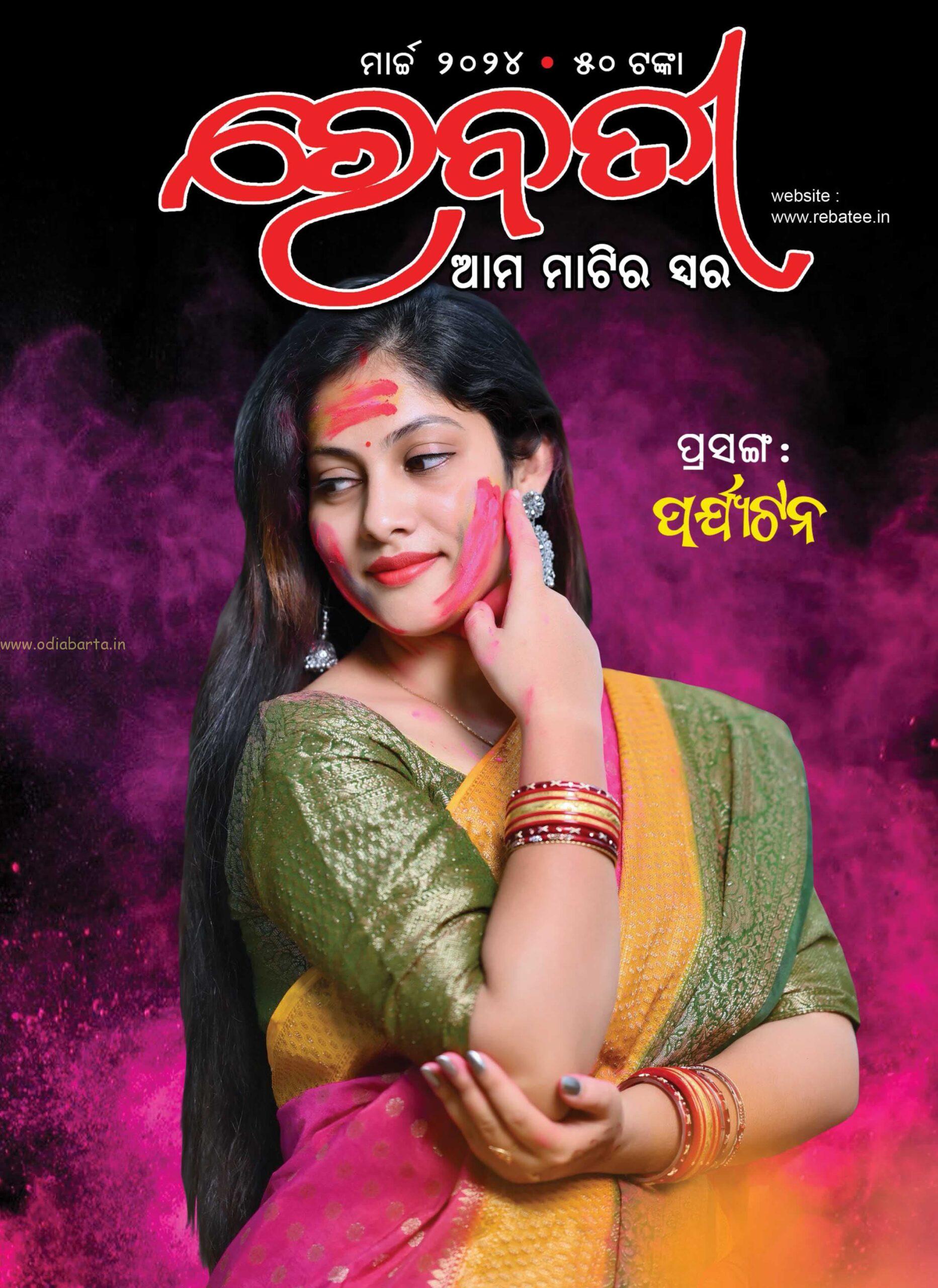 ଓଡ଼ିଆ ବାର୍ତ୍ତା/ ବାଲେଶ୍ଵର (କୃଷ୍ଣ କୁମାର ମହାନ୍ତି): ୨୦୧୮ ଅକ୍ଟୋବରରୁ ନିୟମିତ ଭାବରେ ବାଲେଶ୍ଵରରୁ ପ୍ରକାଶ ପାଇ ଆସୁଥିବା ମାସିକ ପାରିବାରିକ ଫିଚର୍ ପତ୍ରିକା ‘ରେବତୀ’ ଚଳିତ ମାର୍ଚ୍ଚ ସଂଖ୍ୟା ପର୍ଯ୍ୟଟନ ବିଶେଷାଙ୍କ ଭାବରେ ବଜାରକୁ ଆସିଛି। ଫଗୁଖେଳର ପାରମ୍ପରିକ ପ୍ରତୀକରେ ମଡେଲ ମଧୁସ୍ମିତା ଜେନା ମହାପାତ୍ରଙ୍କ ମନଲୋଭା ପ୍ରଚ୍ଛଦ ପାଠକଙ୍କ ମନ କିଣିନେଇଛି।
