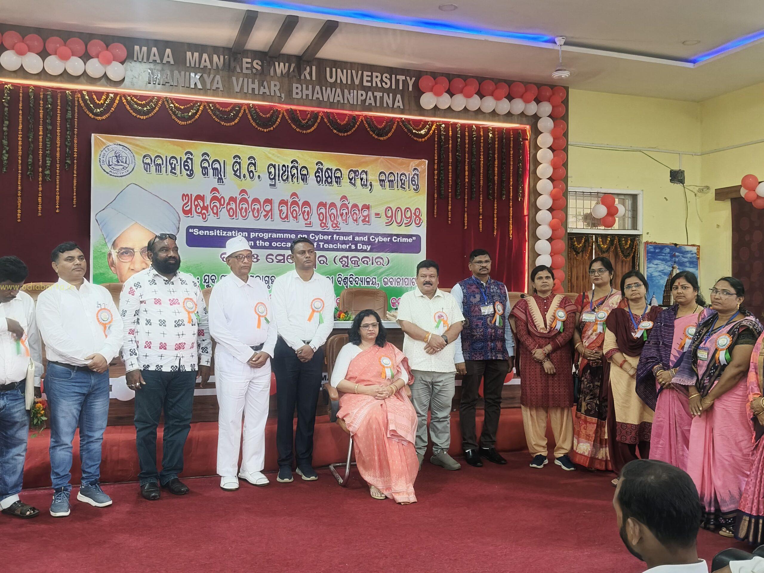 କଳାହାଣ୍ଡି ଜିଲ୍ଲା ସି.ଟି ସଂଘ ସଭାପତି ଲବ ଦୁର୍ଗାଙ୍କ ଅଧ୍ୟକ୍ଷତାରେ ଆୟୋଜିତ କାର୍ଯ୍ୟକ୍ରମରେ ମୁଖ୍ୟ ଅତିଥି ଭାବେ ମାଁ ମାଣିକେଶ୍ଵରୀ ବିଶ୍ବବିଦ୍ୟାଳୟ କୁଳପତି ପ୍ରଫେସର ଡ଼ାଃ ନିବେଦିତା ନାଥ, ମୁଖ୍ୟବକ୍ତା ଭାବେ ବରିଷ୍ଠ ସାମ୍ବାଦିକ ସ୍ବାଧିନ ପାତ୍ର, ସ୍ବତନ୍ତ୍ର ଅତିଥି ଭାବେ ସି.ଟି ଶିକ୍ଷକ ସଂଘ ରାଜ୍ୟ ସଭାପତି ପ୍ରଦୀପ କୁମାର ସାହୁ ସମ୍ମାନିତ ଅତିଥି ଭାବେ ଜିଲ୍ଲା ସଂସ୍କୃତି ଅଧିକାରୀ ବିବେକାନନ୍ଦ ମହାନନ୍ଦ, ସାଇବର କ୍ରାଇମ ଡିଏସପି ଅଳକା ସାହୁ, ମାଁ ମାଣିକେଶ୍ଵରୀ ବିଶ୍ଵବିଦ୍ୟାଳୟ ଉପ କୁଳସଚିବ ଜୟଦେବ ସାହୁ, ରାଷ୍ଟ୍ରପତି ପୁରସ୍କୃାର ପ୍ରାପ୍ତ ଶିକ୍ଷକ ପ୍ରଭାସ ମିଶ୍ର ପ୍ରମୁଖ ମଞ୍ଚାସିନ ଥିଲେ।