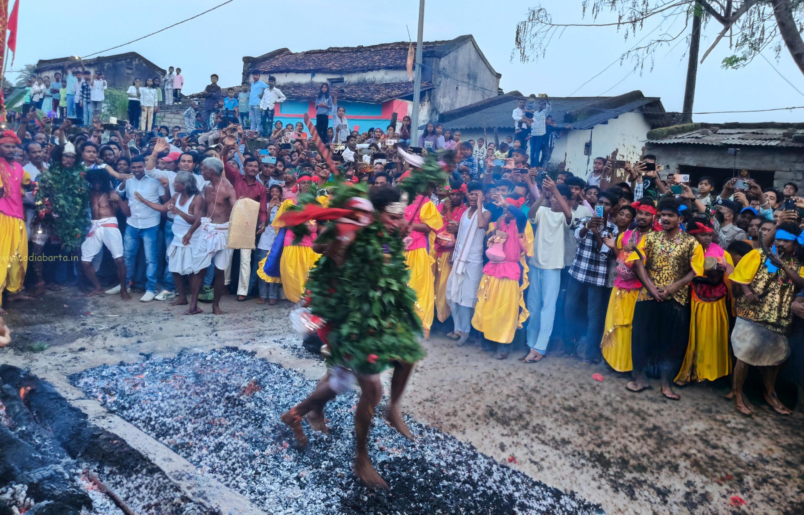 ଅଧାରାସ୍ତାରୁ ଗୌନ୍ତିଆ, ପୂଜକ ଗ୍ରାମବାସୀ ଓ ଅତିଥିମାନେ ସେମାନଙ୍କୁ ସ୍ୱାଗତ ଜଣାଇ ବାଲିଘରକୁ ପାଛୋଟି ନେଇଥିଲେ। ସେଠାରେ ପହଞ୍ଚିବା ପୂର୍ବରୁ ପ୍ରଥମେ ପାଦପୂଜା ଓ ଝାମୁ ପରିକ୍ରମା ପରେ ପରେ ବେତାଳୀ ଭୈରବ ଓ ପାଟଖଣ୍ଡା ଦେବଙ୍କ କାଳେସୀ ଡହଡହ ତତଲା ରଡ଼ ନିଆଁରେ ଚାଲି ନିଜର ଅମାପ ଶକ୍ତିର ନିଦର୍ଶନ ଦେଇଥିଲେ।