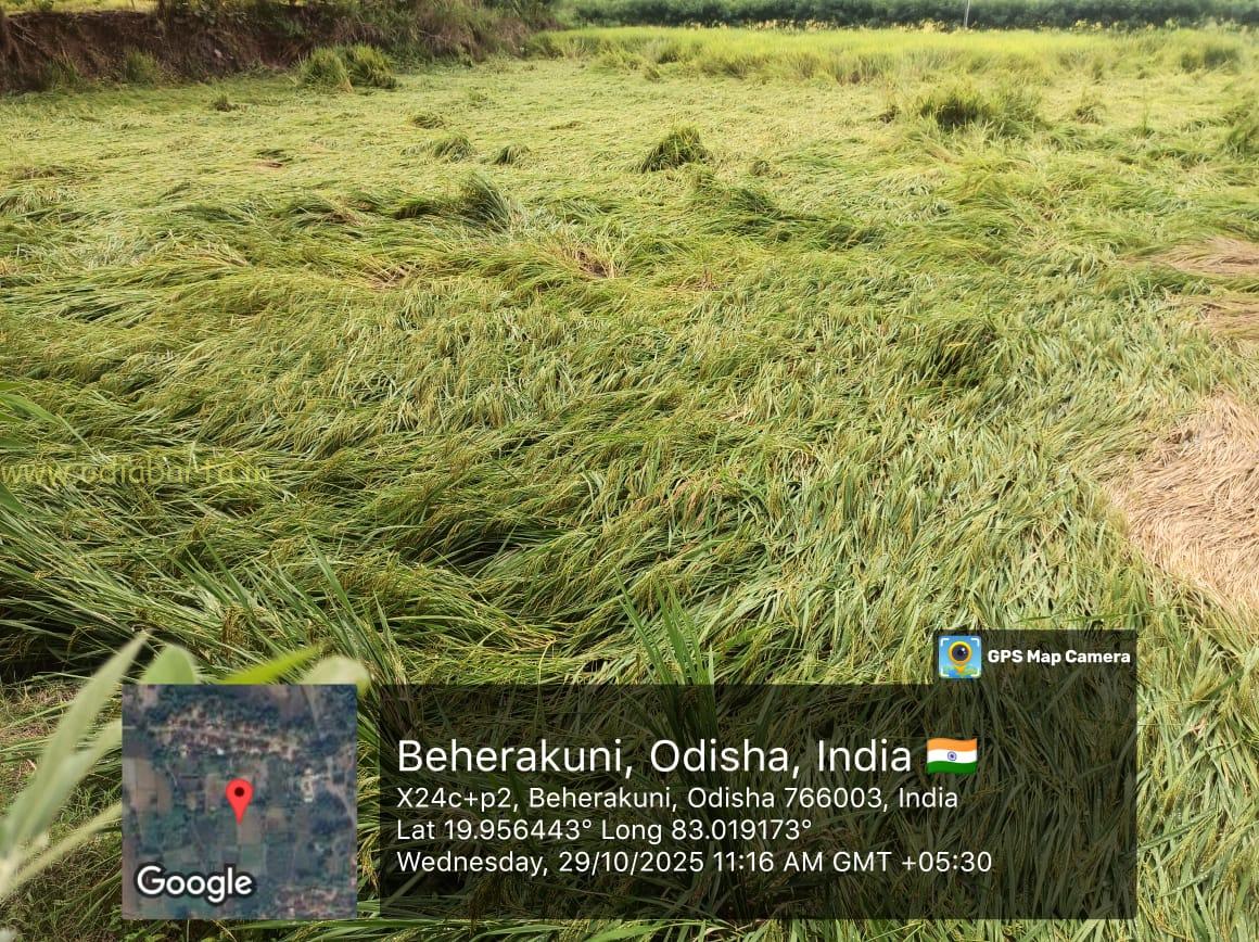 ଭୀଷଣ ବର୍ଷା ଏବଂ ଝଡ଼ପବନ ଯୋଗୁଁ ପାଚିଥିବା ଏବଂ ବାହାରୁଥିବା ଧାନ କ୍ଷେତ ସମ୍ପୂର୍ଣ୍ଣ ନଷ୍ଟ ହୋଇଯାଇଛି, ଯାହା ଫଳରେ ଅନେକ ଚାଷୀଙ୍କର ଜୀବନଯାପନର ଏକମାତ୍ର ଅବଲମ୍ବନ ଦୋହଲି ଯାଇଛି।