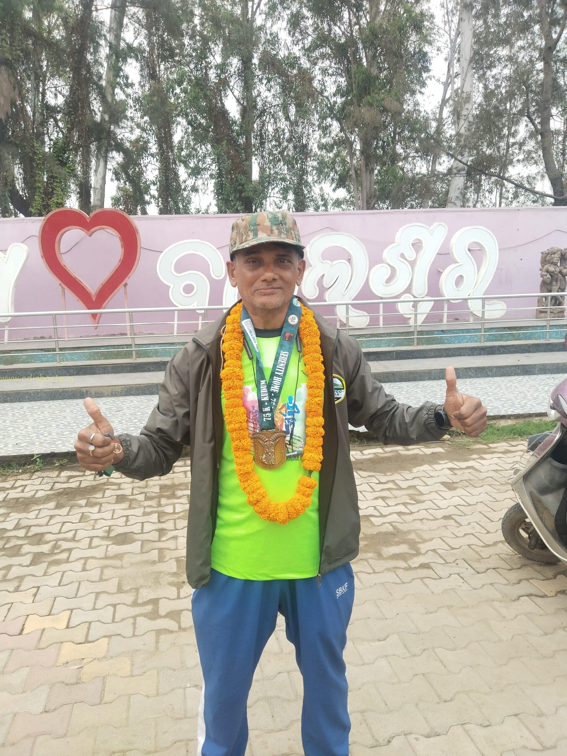 ଓଡ଼ିଆ ବାର୍ତ୍ତା/ ବାଲେଶ୍ୱର (କୃଷ୍ଣ କୁମାର ମହାନ୍ତି): ମନୋବଳ ଦୃଢ଼ ଥିଲେ ଅସାଧ୍ୟ କାର୍ଯ୍ୟ ମଧ୍ୟ ଅଚିରେ କରିହେବ। ଏ କଥାକୁ ପ୍ରମାଣିତ କରିଛନ୍ତି ବାଲେଶ୍ୱରର ନିଆରା ବ୍ୟକ୍ତିତ୍ୱ ମାରାଥନ୍ ରନର୍ ଡମ୍ବରୁଧର ଚଣ୍ଡ। ୫୬ ବର୍ଷ ବୟସ୍କ ଶ୍ରୀ ଚଣ୍ଡ ସମ୍ପ୍ରତି ୧୧ ଘଣ୍ଟାରେ ୭୫ କିଲୋମିଟର ଦୌଡି ବାଲେଶ୍ଵର ପାଇଁ ଗୌରବ ଆଣିଛନ୍ତି କହିଲେ ଭୁଲ ହେବ ନାହିଁ।ପରିଣତ ବୟସରେ ୭୫ କିଲୋମିଟର ଦୌଡ଼ିବା ସହଜ ଲାଗୁନଥିଲେ ମଧ୍ୟ ଏହାକୁ ୧୧ ଘଣ୍ଟାର ସମାପ୍ତ କରିଛନ୍ତି ଶ୍ରୀ ଚଣ୍ଡ। ଏଇ ମାରାଥନ ଦୌଡରେ ସେ ବିଜୟୀ ହେବା ସହ ଷଷ୍ଠ ସ୍ଥାନ ଅଧିକାର କରିଛନ୍ତି।